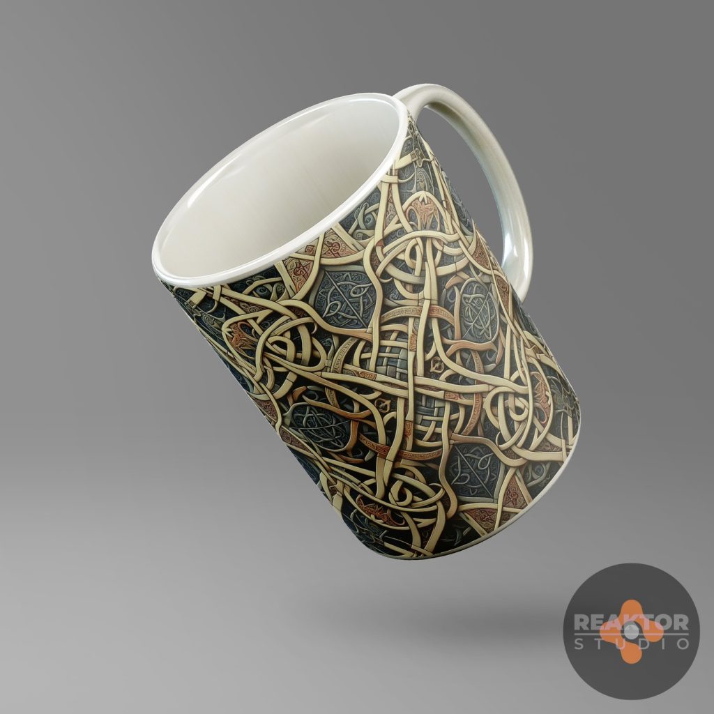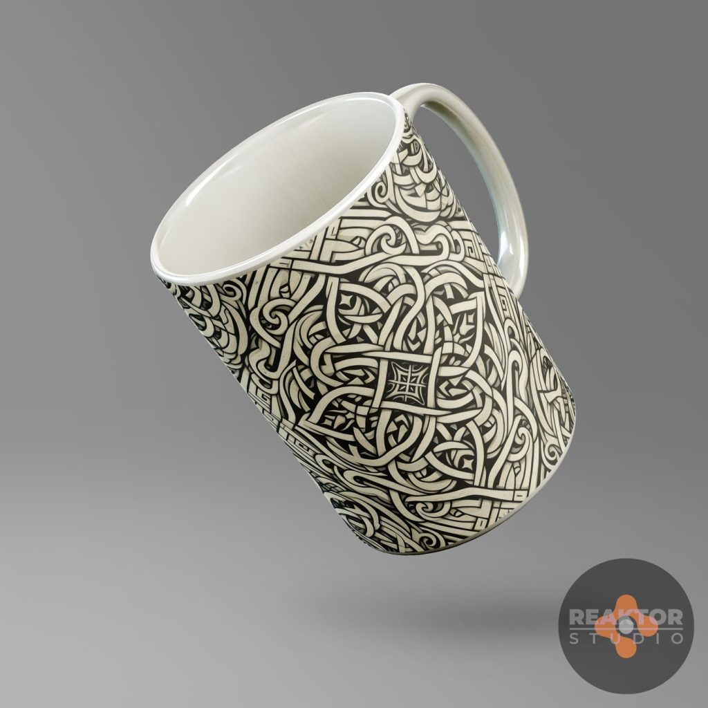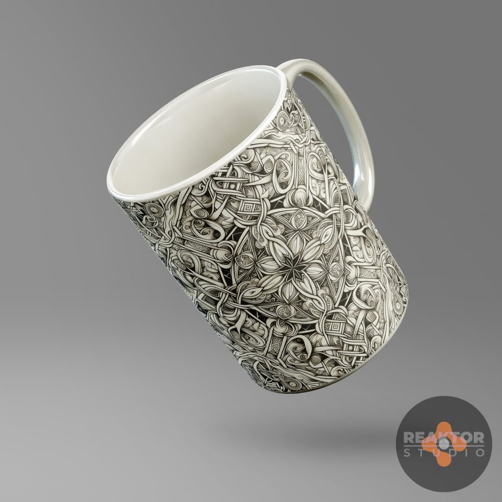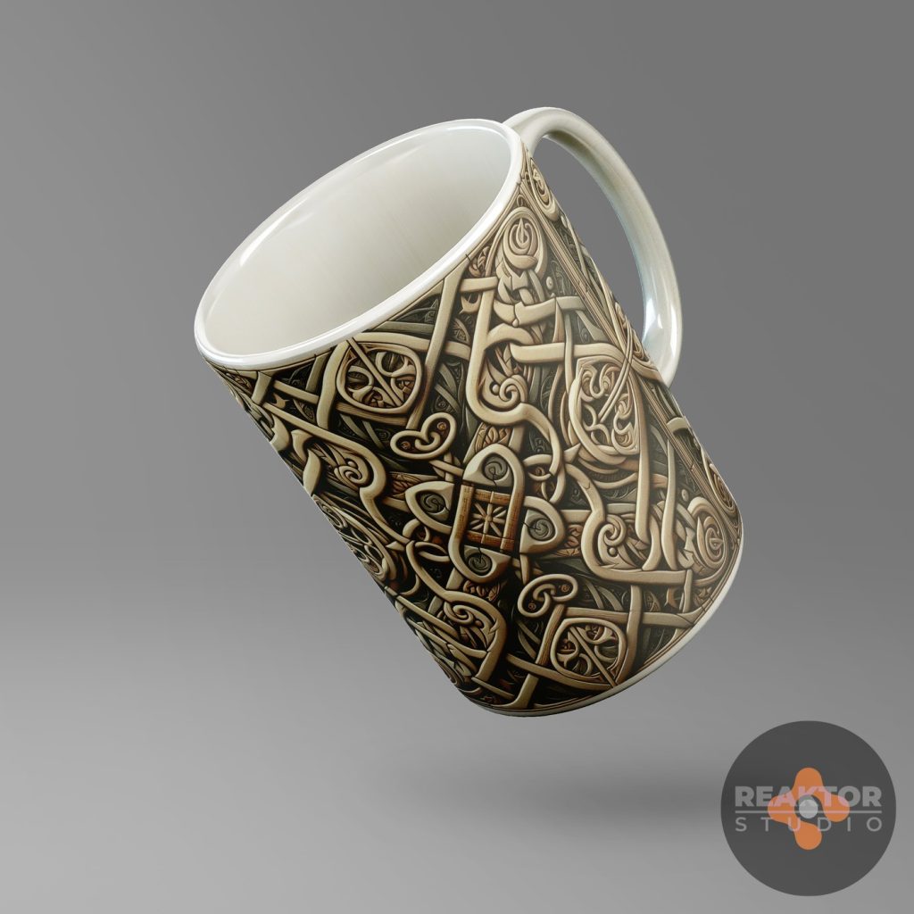 Dla nowopowstającego sklepu internetowego zajmującego się profesjonalnym drukiem cyfrowym, zaprojektowaliśmy kilkadziesiąt abstrakcyjnych nadruków na kubki. Inspiracją były ornamenty kwiatowe oraz decoupage vintage, ornamentyka celtycka i wikingowie.