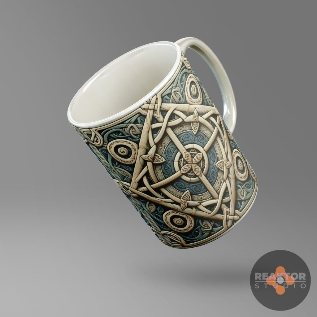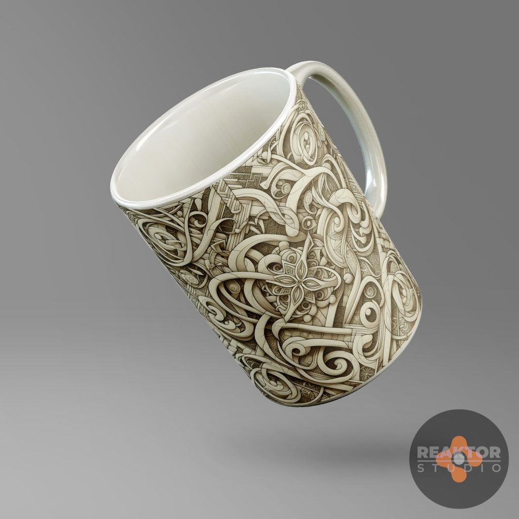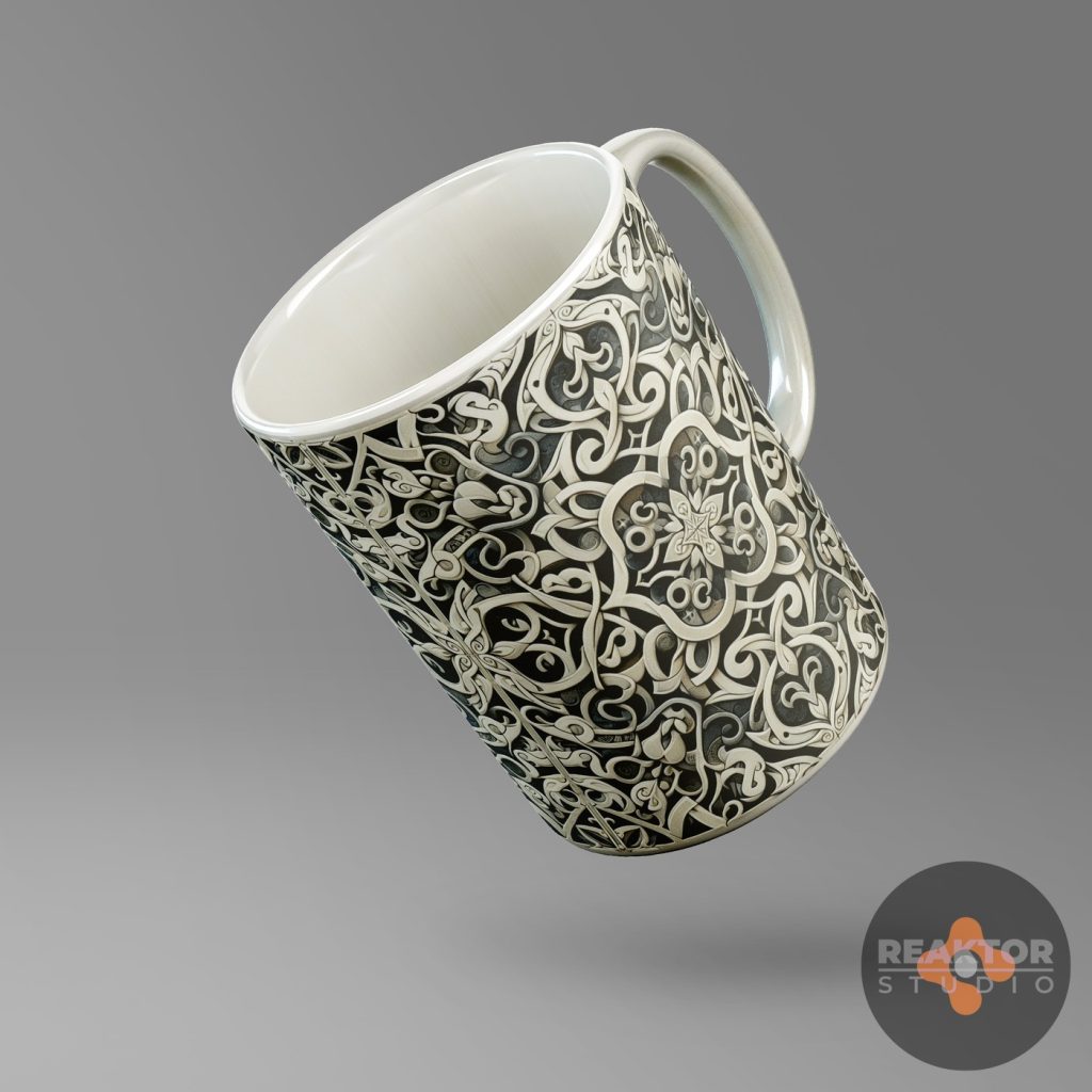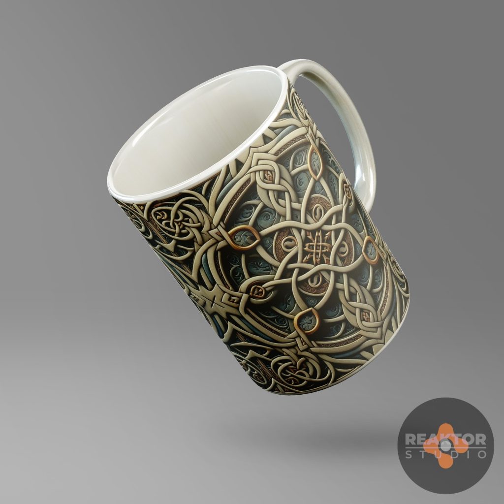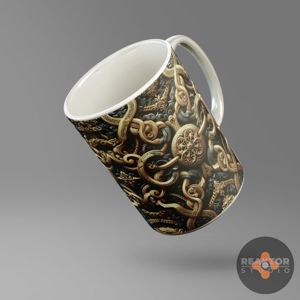 Dla nowopowstającego sklepu internetowego zajmującego się profesjonalnym drukiem cyfrowym, zaprojektowaliśmy kilkadziesiąt abstrakcyjnych nadruków na kubki. Inspiracją były ornamenty kwiatowe oraz decoupage vintage, ornamentyka celtycka i wikingowie.