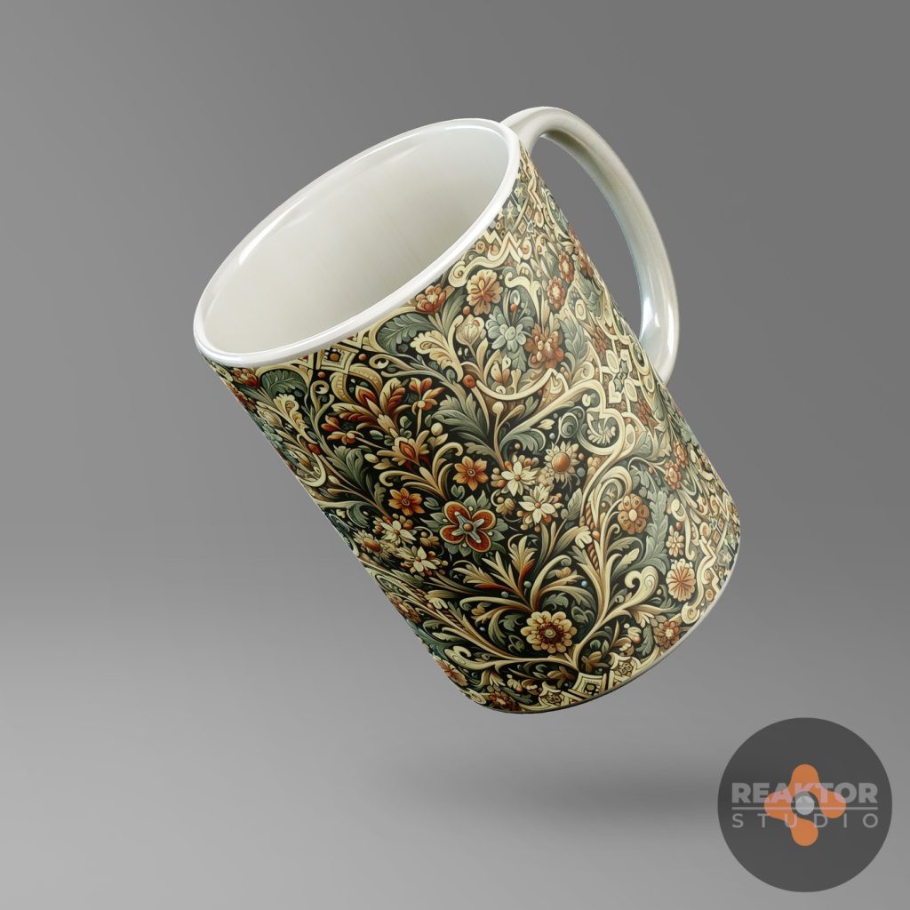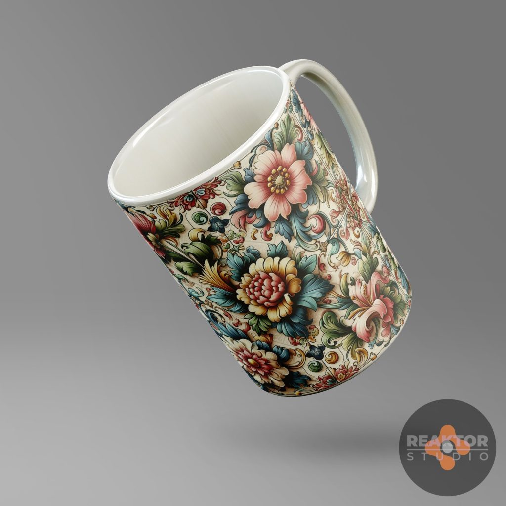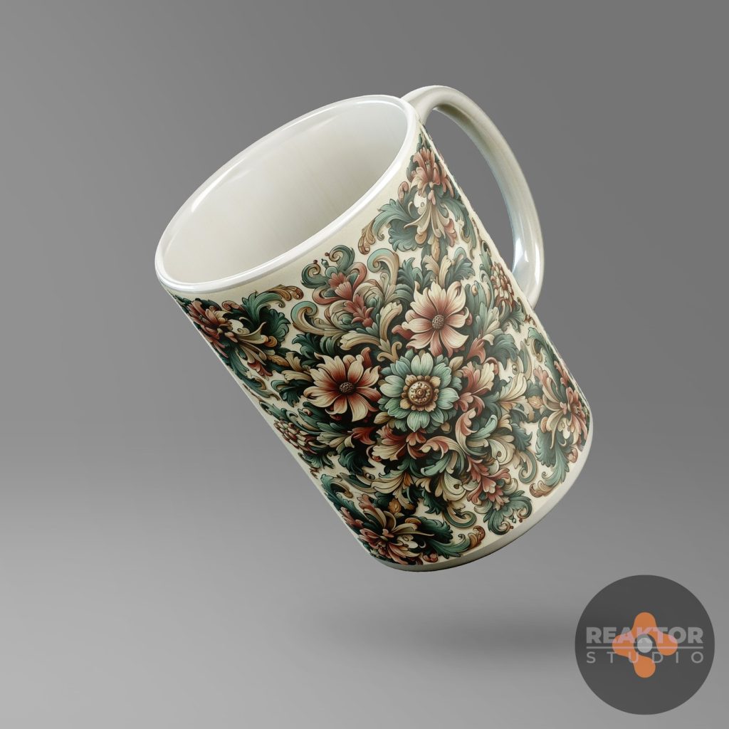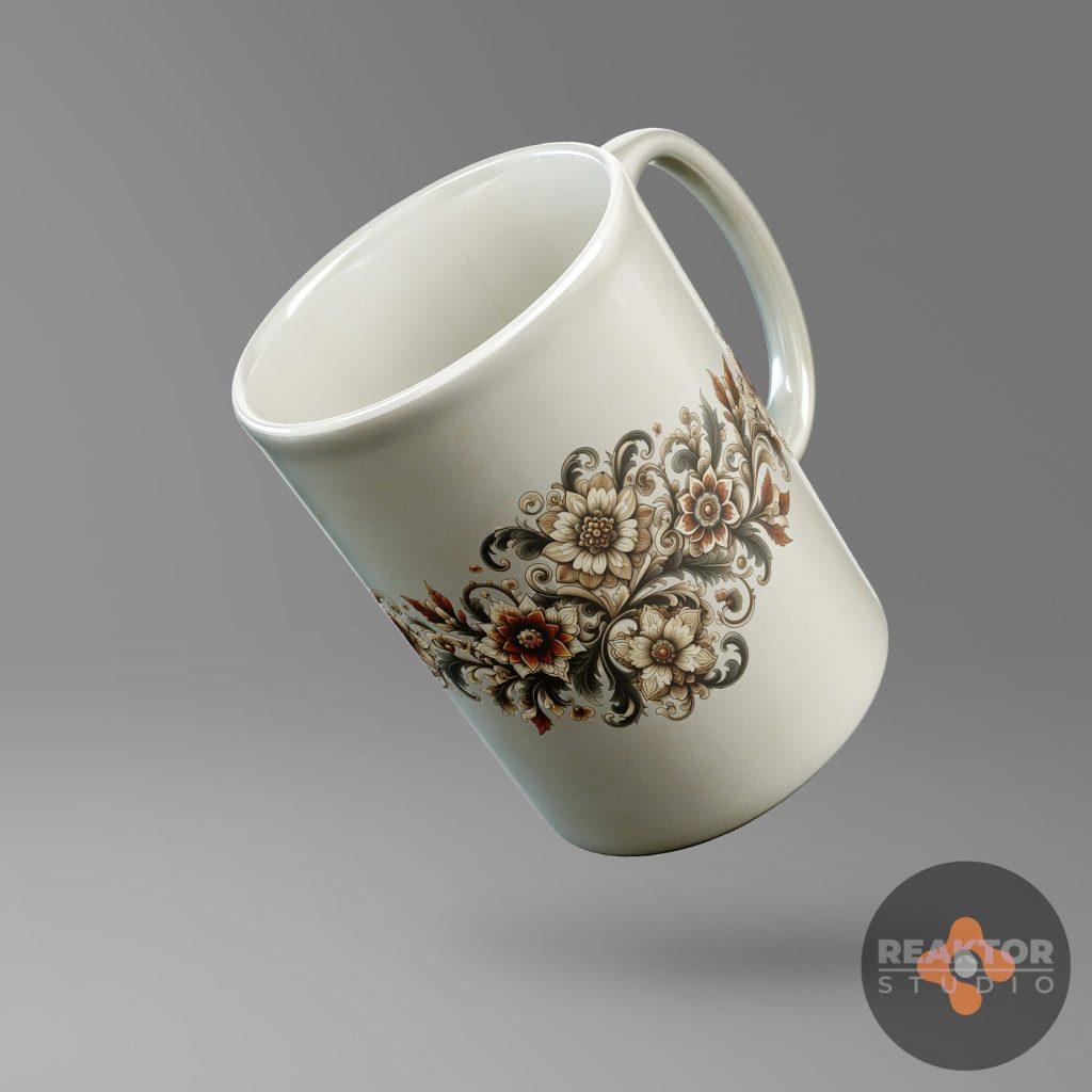 Dla nowopowstającego sklepu internetowego zajmującego się profesjonalnym drukiem cyfrowym, zaprojektowaliśmy kilkadziesiąt abstrakcyjnych nadruków na kubki. Inspiracją były ornamenty kwiatowe oraz decoupage vintage, ornamentyka celtycka i wikingowie.